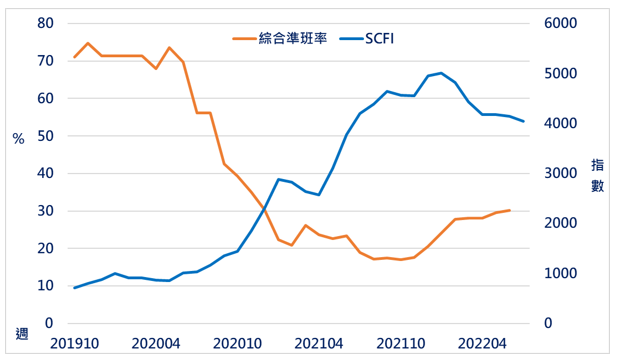 圖五、上海集裝箱指數與綜合準班率