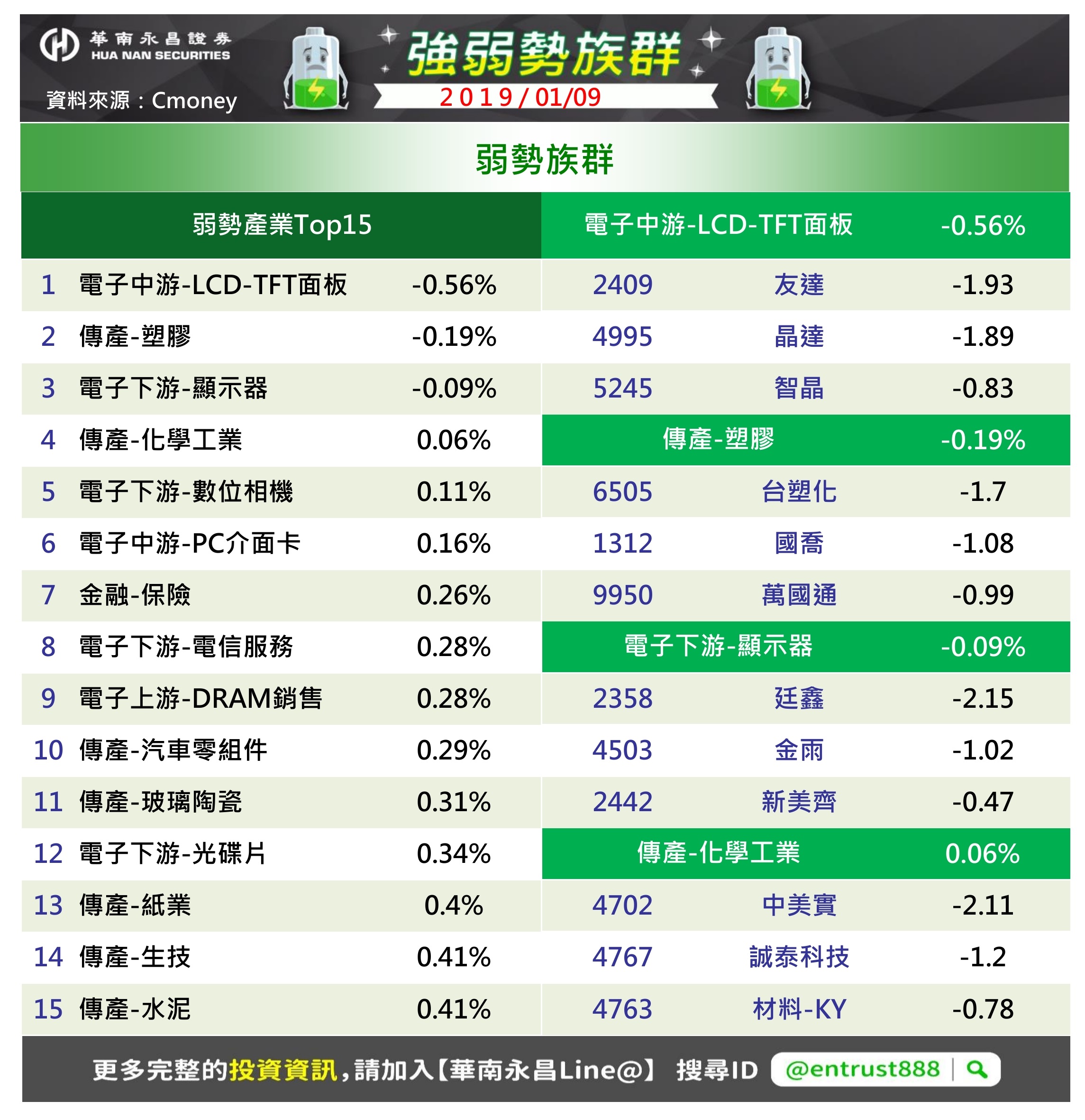 運用漲跌幅度找出大盤強弱勢股。著重在